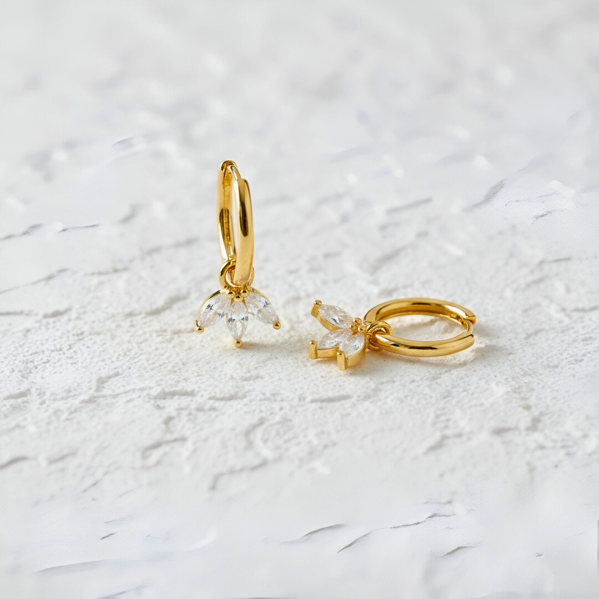 These refined gold-finish huggie hoop earrings are embellished with a delicate three-petal pendant that recalls the purity of the lotus flower.