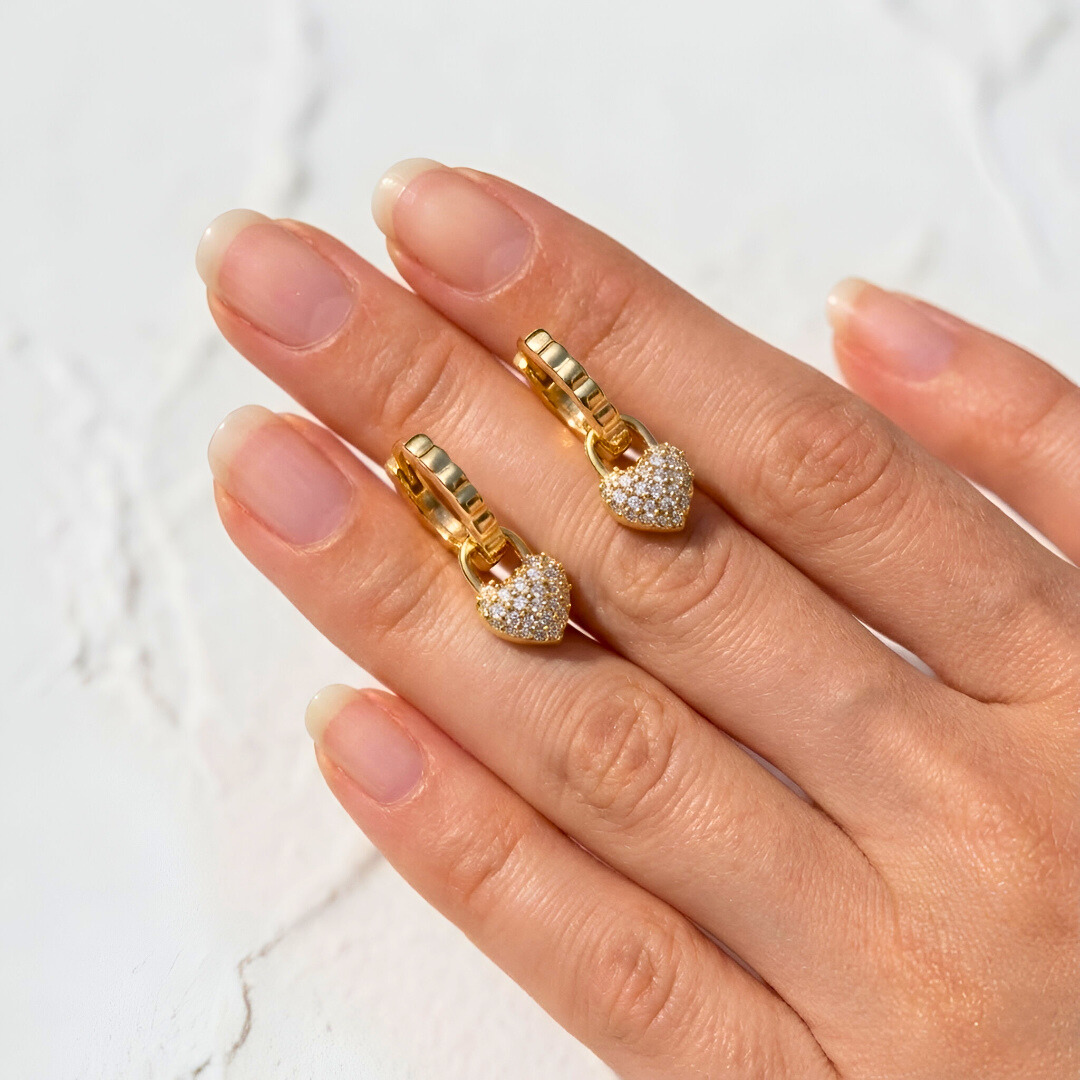 The surface of the circle features a delicate relief workmanship, while the heart is studded with brilliant-cut zirconia in a pavé setting, creating plays of light with every movement.