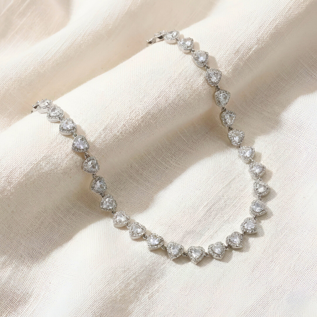 Brighten up your style with this refined tennis necklace featuring a continuous trail of sparkling hearts. Embellished with pavé-set brilliant-cut zirconia.