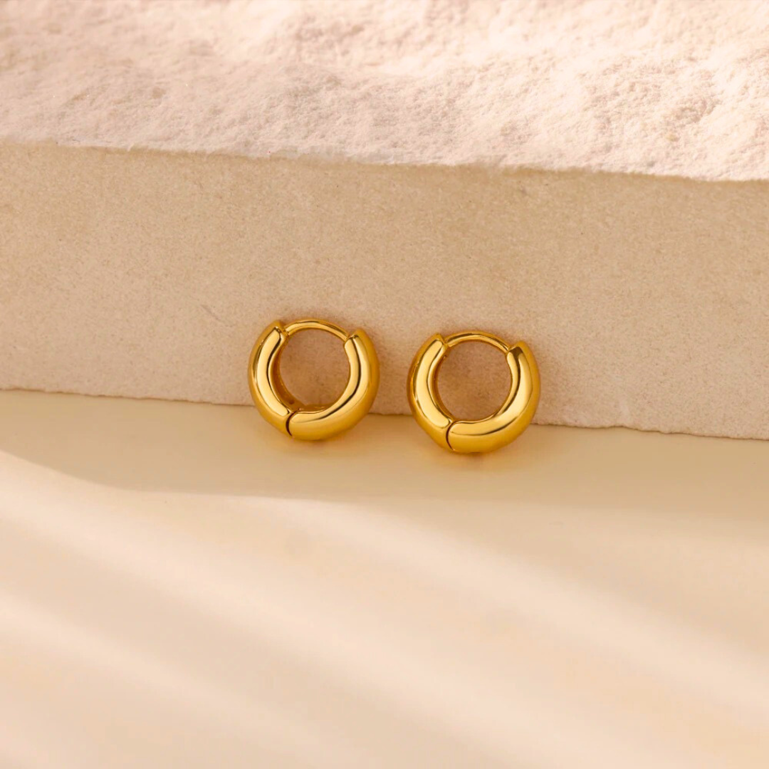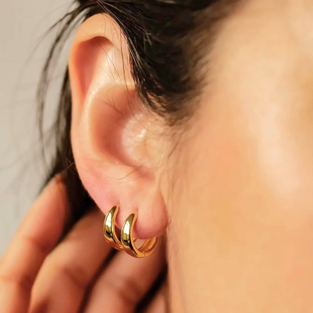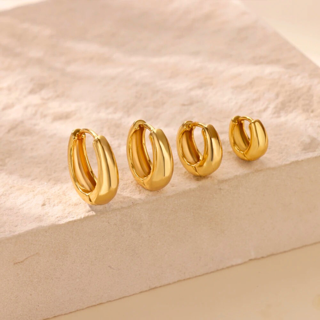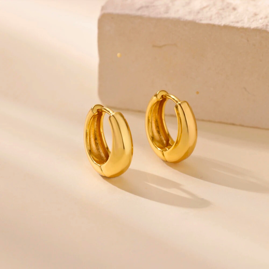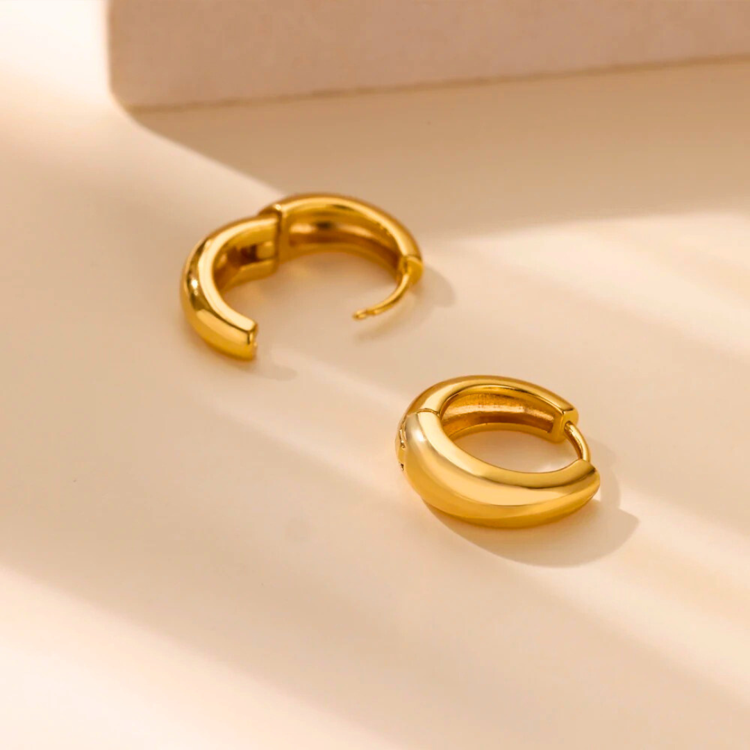 Brighten up your look with these curved hoop earrings, a must-have for an everyday luxury look. Featuring a sculptural teardrop shape and a shiny gold finish, they offer a chunky yet refined design that perfectly hugs the earlobe.