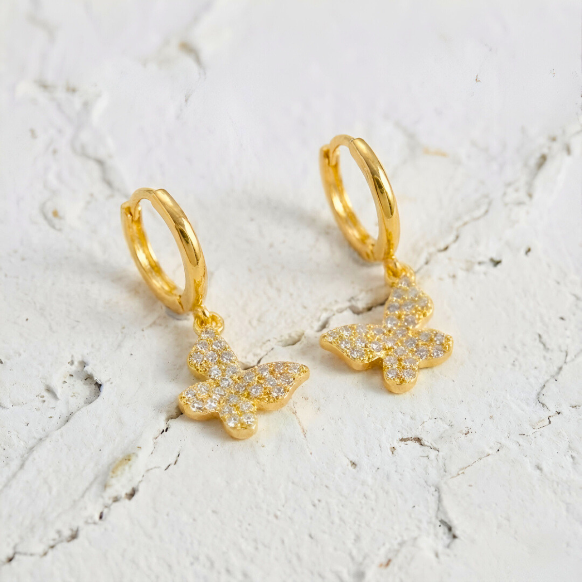 Add a touch of elegance and lightness to your style with these butterfly pendant hoop earrings. The yellow gold base supports a delicate pendant entirely covered in sparkling zirconia, creating a refined and feminine highlight.